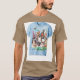 El color es muy bonito al natural, como la foto. El tejido es suave y de buena calidad. Sin defectos en el tintado, ni hilos sueltos o descosidos. Bien la impresión. Los bordes de las letras y el dibujo son nítidos, y el color contrasta muy bien con el de la camiseta.