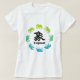 Un diseño de elefantes caminando en círculo con el carácter chino e inglés del "elefante" en el centro.