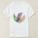 This elegant illustration features three detailed feathers arranged in a harmonious composition, colored in rich purple, green, and golden tones. Each feather is finely textured with soft shading and delicate linework, creating a refined and artistic look with a touch of fantasy and bohemian charm.