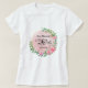 Diseño personalizado de remera moderna elegante con flores rosadas de acuarela. Parte de una colección moderna simple y elegante. Diseño de remera personalizada para Sra con escritura moderna y corona floral rosa que se puede personalizar con recién casados. ¡Hace un regalo de boda perfecto para la luna de miel!