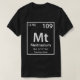 Un desgarrador diseño de Meitnerium. El meitnerio es un elemento químico con el símbolo Mt y el número atómico 109. Es un elemento sintético extremadamente radioactivo (un elemento que no se encuentra en la naturaleza que se puede crear en un laboratorio). El isótopo conocido más estable, meitnerium-278, tiene una semivida de 7,6 segundos. La estética general del diseño es nítida y minimalista, con un enfoque en la sencillez y la elegancia. El uso del blanco como color principal le da al diseño un aspecto limpio y fresco, mientras que el negrita del tipo de letra negro y el círculo añaden contraste y profundidad. Es un diseño versátil que pueden usar hombres y mujeres. Es perfecto para quienes aprecian la ciencia, la tecnología y la innovación, y quieren expresar su pasión por estos campos a través de sus ropas. Ya sea usado de manera casual o vestido, este diseño seguramente hará una declaración y encenderá la conversación.