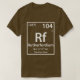 Un diseño épico de Rutherfordium. Rutherfordium es un elemento químico con el símbolo Rf y el número atómico 104, nombrado en honor del físico Ernest Rutherford. Es un elemento sintético (un elemento que se puede crear en un laboratorio pero no se encuentra en la naturaleza) y radiactivo; el isótopo conocido más estable, 267Rf, tiene una semivida de aproximadamente 1,3 horas. En la tabla periódica de los elementos, es un elemento d-block y el segundo de los elementos de transición de cuarta fila. La estética general del diseño es nítida y minimalista, con un enfoque en la sencillez y la elegancia. El uso del blanco como color principal le da al diseño un aspecto limpio y fresco, mientras que el negrita del tipo de letra negro y el círculo añaden contraste y profundidad. Es un diseño versátil que pueden usar hombres y mujeres. Es perfecto para quienes aprecian la ciencia, la tecnología y la innovación, y quieren expresar su pasión por estos campos a través de sus ropas. Ya sea usado de manera casual o vestido, este diseño seguramente hará una declaración y encenderá la conversación.