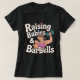 Este diseño vibrante de camisetas al estilo personalizado captura a una alegre madre con un brazo muscular levantando un dumbombante mientras acaricia tenazmente a un bebé riéndose en su otro brazo. El pequeño brazo del bebé imita la pose, flexando alegremente, añadiendo un toque humorístico y reconfortante. La frase "Raising Babies & Barbells" (Elevando a los bebés y las campanas) flota por encima en un tipo de letra animado y juguetón con suaves notas en tonos pastel. Diseñado sobre un sólido fondo negro, los cálidos y acogedores tonos y el estilo caprichoso celebran el acto de equilibrio de la maternidad y la aptitud de una manera divertida y empoderadora.