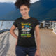 El color es muy bonito al natural, como la foto. El tejido es suave y de buena calidad. Sin defectos en el tintado, ni hilos sueltos o descosidos. Bien la impresión. Los bordes de las letras y el dibujo son nítidos, y el color contrasta muy bien con el de la camiseta.
