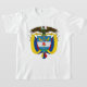 Escudo de Colombia. El escudo de armas de Colombia contiene un escudo con numerosos símbolos. Encaramado sobre el escudo hay un Cóndor Andino con una corona de olivo y el cóndor que simboliza la libertad. El lema nacional, Libertad y Orden, está en un pergamino entre el pájaro y el escudo en el fondo dorado. El cóndor se representa frente al frente con las alas extendidas y mirando a la derecha.