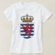 Menor escudo de armas de Luxemburgo. El escudo de armas de Luxemburgo tiene sus orígenes en la Edad Media y se derivó del Ducado de Limburg, en la Bélgica moderna y en los Países Bajos. El escudo de armas de Luxemburgo es más grande, medio y menor. El escudo de armas más grande tiene dos leones regulares y coronados como partidarios, la Orden Dinástica y todos rodeados de un manto hermano coronado por una corona real heráldica (corona utilizada por el Gran Duque). El escudo de armas medio tiene a los partidarios, el orden y la corona. El escudo de armas menor tiene la corona y el escudo sin ornamentos externos.