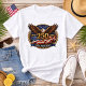 Este llamativo diseño de camiseta patriótica conmemora el 250 aniversario de los Estados Unidos de América con un emblema formal ricamente detallado. En su corazón, un águila calva poderosa con alas de bronce extendidas se eleva contra un campo circular de color azul marino profundo lleno de estrellas, simbolizando la fuerza, la vigilancia y la libertad. Los números metálicos de bronce en negrita “250” dominan el centro, mientras que las fechas 1776 y 2026 se mantienen orgullosamente a ambos lados, honrando la fundación de la nación y su hito histórico semiquincentenario. Una bandera estadounidense dramática y fluida agrega movimiento y orgullo debajo del águila, enmarcada por una elegante corona de laurel de bronce que representa el honor, la victoria y la duradera legado. Terminado con una cinta azul que dice “AÑOS ANIVERSARIO”.