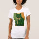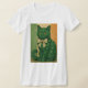 A poised emerald cat adorned with subtle clover motifs, its golden gaze calm, enigmatic, and quietly commanding, finished with a delicate bow crafted from vintage sheet music.