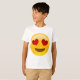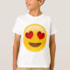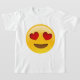 Diseño divertido de la emoji. Cara amarilla con los ojos rojos del corazón. Añada su propio texto. Cambie el color de fondo su preferido.