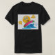 El color es muy bonito al natural, como la foto. El tejido es suave y de buena calidad. Sin defectos en el tintado, ni hilos sueltos o descosidos. Bien la impresión. Los bordes de las letras y el dibujo son nítidos, y el color contrasta muy bien con el de la camiseta.
