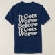 Empeora antes de que empeore 1.Funny, Family, Sports, Music, Education, Animals, Jobs, Names, Graphic, Tees Shirt, Funny Sayings, Vintage, Holidays, Gifts, fiesta, souvenir, orgullo, vacaciones, ropa de vestir regalo para el Día del Padre, Navidades, cumpleaños, Día de la Madre, aniversario, graduación, Halloween, Jueves, Jubilación, Día de San Patricio, Día de Acción de Gracias.