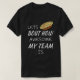 El color es muy bonito al natural, como la foto. El tejido es suave y de buena calidad. Sin defectos en el tintado, ni hilos sueltos o descosidos. Bien la impresión. Los bordes de las letras y el dibujo son nítidos, y el color contrasta muy bien con el de la camiseta.