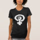 El símbolo femenino universal combinó con la mano de la solidaridad en texto negro en la camiseta blanca