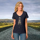 Camiseta con cuello en V de mujer, Negro, XL de adulto