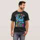 El color es muy bonito al natural, como la foto. El tejido es suave y de buena calidad. Sin defectos en el tintado, ni hilos sueltos o descosidos. Bien la impresión. Los bordes de las letras y el dibujo son nítidos, y el color contrasta muy bien con el de la camiseta.