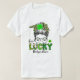 Camiseta Enfermera de diálisis afortunada Messy Bun Shamroc