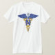Esta Enfermería Caduceus presenta serpientes doradas hermanadas alrededor de un personal azul claro con las alas azules más profundas y la gran letra N.