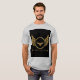 Camiseta básica con texto de "felicitaciones" y una imagen de águila dorada en color gris: Premium, mezcla de algodón ultraligero para máxima comodidad y durabilidad, Una impresionante imagen de águila dorada, centrada y expuesta de forma destacada. Las alas del águila se extienden a lo ancho, mostrando detalles de plumas intrincados y una sensación de poder majestuoso. La tinta dorada aporta un efecto de brillo, haciendo que el águila se destaque vívidamente sobre el fondo gris. Debajo de la imagen del águila, la palabra "Felicitaciones" está impresa en un elegante y moderno tipo de letra. El texto complementa la imagen del águila, creando un diseño armonioso y elegante.