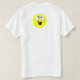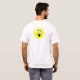El texto es una imagen, blanca, delineada en negro, así que se mostrará bien en cualquier color. "No soy torpe. Solo experimento cambios periódicos en mis estabilizadores gravitacionales".... que es lo que le dije a un compañero de trabajo después de tropezar con mi sombra la segunda vez en pocos minutos. La cara de atrás es un collage de ojos, una imagen de punto y un texto "u" para la sonrisa. Esto puede ser borrado si prefiere la camisa de esa manera (lo que hará que la camisa sea un poco más baja en el costo también).