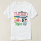 Este diseño presenta una camiseta blanca con la palabra "Enseñanza" en un guión rojo estilizado en la parte superior. Debajo están los gráficos de una pluma, una manzana y las palabras "MI tribu" con "tribu" en escritura verde. El diseño también incluye gráficos de un libro y tallos de trigo.