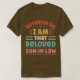 Entre nosotros soy ese querido hijo en la ley. Impresionante gran recuerdo divertido regalo vestido de ropa de pareja a juego para mamá, papá, hermano, hermana, esposa, esposo, hijo, hija, papá, mamá, papá, papá, abuelo, abuela tía de la abuela, tío suyo.