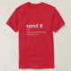 El color es muy bonito al natural, como la foto. El tejido es suave y de buena calidad. Sin defectos en el tintado, ni hilos sueltos o descosidos. Bien la impresión. Los bordes de las letras y el dibujo son nítidos, y el color contrasta muy bien con el de la camiseta.