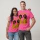 El color es muy bonito al natural, como la foto. El tejido es suave y de buena calidad. Sin defectos en el tintado, ni hilos sueltos o descosidos. Bien la impresión. Los bordes de las letras y el dibujo son nítidos, y el color contrasta muy bien con el de la camiseta.