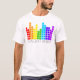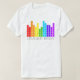 Un diseño retro del ecualizador gráfico del estilo, divirtiéndose los colores del arco iris. La parte posterior tiene un pequeño arco iris entre los hombros, la marca registrada de RNBW recto.