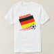 Muestre su orgullo en el equipo de fútbol alemán comprando este regalo que ofrece la bandera alemana, el nombre de país Alemania y un vuelo del balón de fútbol a través de la parte inferior de la bandera