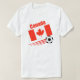 Muestre su orgullo en el equipo de fútbol canadiense comprando este regalo que ofrece la bandera canadiense, el nombre de país Canadá y un vuelo del balón de fútbol a través de la parte inferior de la bandera
