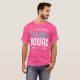 El color es muy bonito al natural, como la foto. El tejido es suave y de buena calidad. Sin defectos en el tintado, ni hilos sueltos o descosidos. Bien la impresión. Los bordes de las letras y el dibujo son nítidos, y el color contrasta muy bien con el de la camiseta.