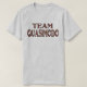 Un diseño de camisas mostrando su apoyo al campanario del Hunchback de Notre Dame. "Team Quasimodo" se escribe en claro es un tipo de letra ligeramente ornamentado pero no confuso en rojo oscuro texturado. Ya sea que seas fan de la novela, película o música si tu equipo, Quasmodo, que esta es la camisa para ti.