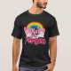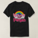 El color es muy bonito al natural, como la foto. El tejido es suave y de buena calidad. Sin defectos en el tintado, ni hilos sueltos o descosidos. Bien la impresión. Los bordes de las letras y el dibujo son nítidos, y el color contrasta muy bien con el de la camiseta.