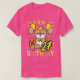 El color es muy bonito al natural, como la foto. El tejido es suave y de buena calidad. Sin defectos en el tintado, ni hilos sueltos o descosidos. Bien la impresión. Los bordes de las letras y el dibujo son nítidos, y el color contrasta muy bien con el de la camiseta.