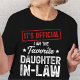 Si buscas la idea perfecta de regalos para tu nuera favorita en su cumpleaños, boda o fiesta de compromiso también para el traje de pareja de la reunión familiar. Este gracioso dicho "Es oficial que soy la hija favorita en la ley" será un éxito para ella.