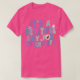 El color es muy bonito al natural, como la foto. El tejido es suave y de buena calidad. Sin defectos en el tintado, ni hilos sueltos o descosidos. Bien la impresión. Los bordes de las letras y el dibujo son nítidos, y el color contrasta muy bien con el de la camiseta.