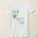 Camiseta con elegantes flores azules y blancas con la opción de escribir tu propia cita. Un personalizar inferior está disponible para personalizar camisetas. Diseño © por Nayda Liz Rivera