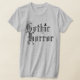 ¡Dile a la gente lo que escribes y lees! "Escribo horror gótico" con una mansión espeluznante con lápidas y un árbol con un murciélago. "Escribo" es personalizable a "leo".