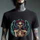 Espectacular esqueleto zombi Angel Oscuro Fantasía arte color arte ilustracion hombres camiseta negra