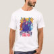 "Un diseño espeluznante y colorido que presenta al máximo escuadrón de Halloween: vampiro, bruja, lobo, zombie, Frankenstein y fantasma. Perfecto para los amantes de Halloween y fans de gráficos audaces y aterradores".