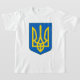Escudo de armas patriótico ucraniano. Escudo de armas de Ucrania. Menos escudo de armas de Ucrania, el llamado Tryzub. Un símbolo de tridente estilizado en oro sobre un escudo de fondo azul.