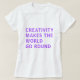 Tshirt for creatives incluye el texto 'la creatividad hace que el mundo gire' en una tipografía violeta brillante y audaz. Diseñado exclusivamente para usted por Happy Dolphin Studio. Si necesita ayuda o productos que coincidan, por favor contáctenos a través de nuestro chat de tienda.
