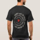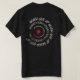 Esta camiseta combina un mensaje retro y fortalecedor en el bolsillo delantero con un gráfico atrevido y abstracto en la parte posterior. En el frente aparece la frase "NUNCA RENUNCIAR NUNCA DEJAR DE INTENTAR NO DARSE NUNCA" en un texto espiral angustiado, señalando un pequeño asterisco rojo, todo en blanco roto sobre negro. En la parte trasera se ve una gran flor roja de seis pétalos dibujada a mano con un fondo negro a juego. Ambos elementos comparten una estética cruda y energética, creando una declaración unificada y motivadora.