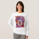 Un diseño lindo y lúdico con un fantasma sonriente rodeado de murciélagos de colores vivos que vuelan libremente en un impresionante cielo morado. Esta escena caprichosa exuda energía positiva y diversión, convirtiéndolo en la adición perfecta a tu camiseta. Ideal para los amantes de los ilustraciones lúdicos y de las celebraciones como Halloween.