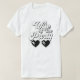 Camiseta de la fiesta de la soltera para la novia con "Esposa del Fiesta" en un gran guión de estilo retro de los años 70 y gafas de sol en forma de corazón. Para el grupo de solteros hay disponibles camisetas de coordinación "La vida del Fiesta".