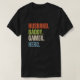 El color es muy bonito al natural, como la foto. El tejido es suave y de buena calidad. Sin defectos en el tintado, ni hilos sueltos o descosidos. Bien la impresión. Los bordes de las letras y el dibujo son nítidos, y el color contrasta muy bien con el de la camiseta.
