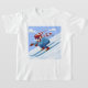 Un esquiador cuesta abajo esquiando por las pistas. Este diseño se ve realmente efectivo en esta camiseta para niños