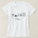 Esta camiseta presenta un ilustracion de arte de línea estilo silueta del horizonte de París.