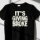Aquí hay un diseño arduo de "It's Giving Broke" con una fuente negra rota sobre un desvanecido fondo de pared de concreto, con tenues contornos de billetes en dólares y salpicaduras.
