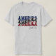 Perfecto para el 4 de julio, pero apropiado todo el año. Esta camisa repite el estilizado texto "AMÉRICA" en azul, negro y rojo. En la parte inferior está el guión negro "Desde 1776".